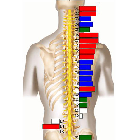 The NeuralTherm Scanner performs thermal readings along the paraspinal muscles using infrared sensors. The body’s temperature controls can be affected by pressure and tension in spinal nerves and studies have shown that changes in temperature along the spine can directly relate to how well organs function. Measuring the subtle changes in temperature allows the chiropractor to see how well nerves are supplying different organs, glands and vessels.